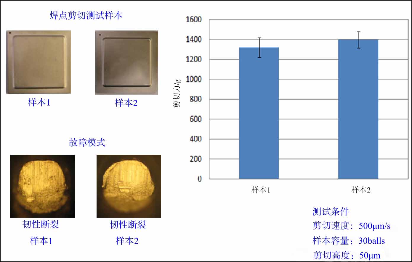 (3)焊点剪切力测试。对BGA进行过炉模拟焊接,然后对剪切力进行测试,发现结果比同样尺寸的其他公司BGA的剪切力小,剪切力分析如图3-46所示。