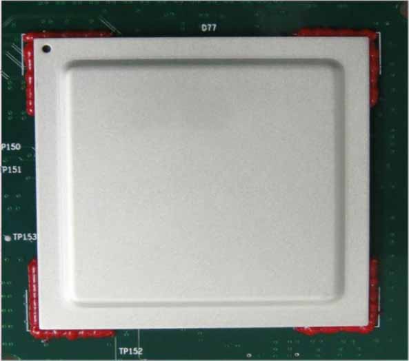 (1)提高抗破坏能力。由于运输过程不可控制,因此采用的是对BGA进行加固的方法,如图3-47所示,以提高抗应力破坏的能力。