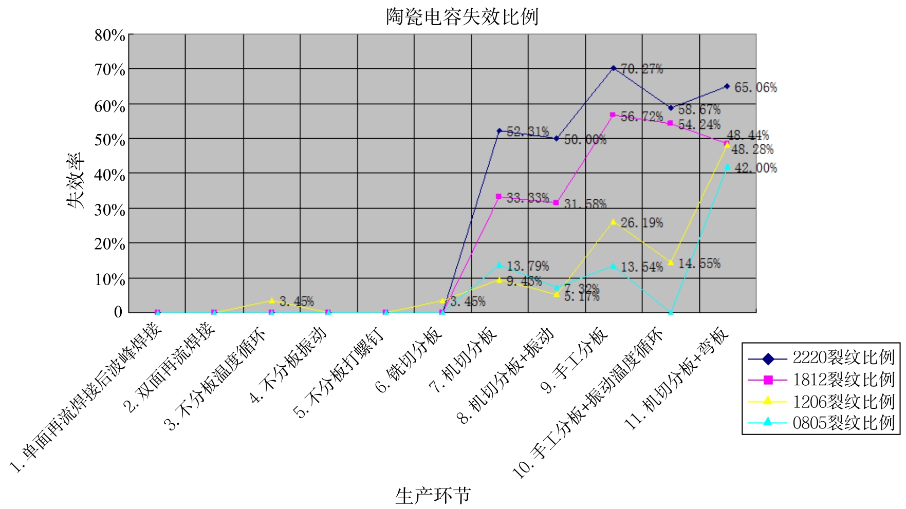 图3-29 不同分板方法导致的片式电容失效率
