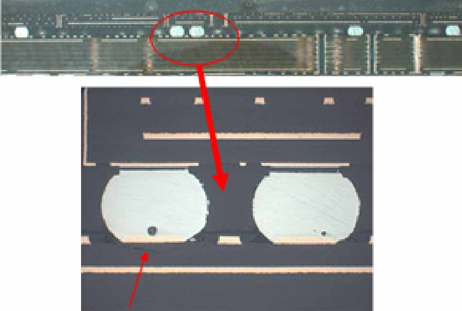 图3-40 BGA断裂焊点的切片图