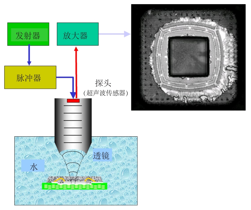 超声扫描显微镜对分层、空洞等具有极高的灵敏性,可以探测到0.1μm以下的分层现象。