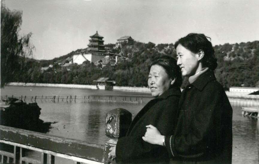 1981年,母亲张培侠到北京看望种俐俐(右),游览颐和园时留影