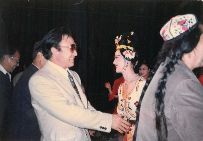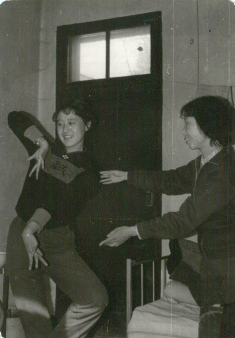 1988年,种俐俐(左)与高金荣(右)探讨敦煌舞蹈教材