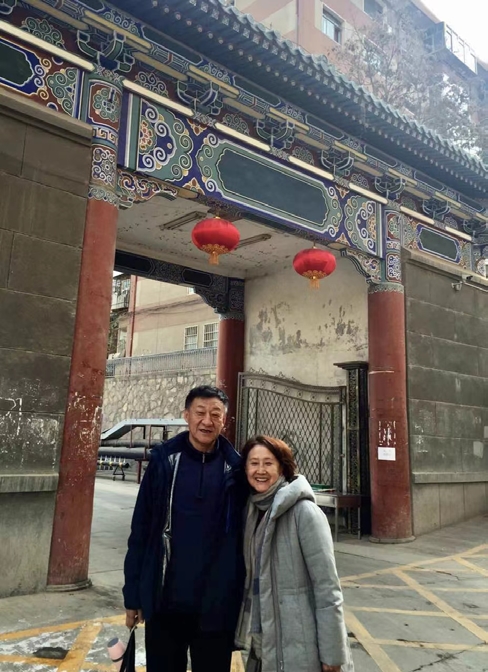 2017年,种俐俐(右)和二哥种联成在西北民族学院旧大门前合影
