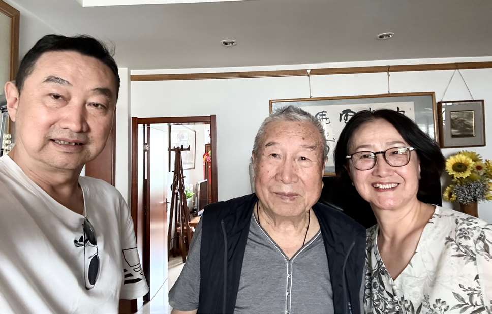 2023年,种俐俐(右)、赵星(左)看望兰州市政协原副主席、著名画家郭文涛先生(中)