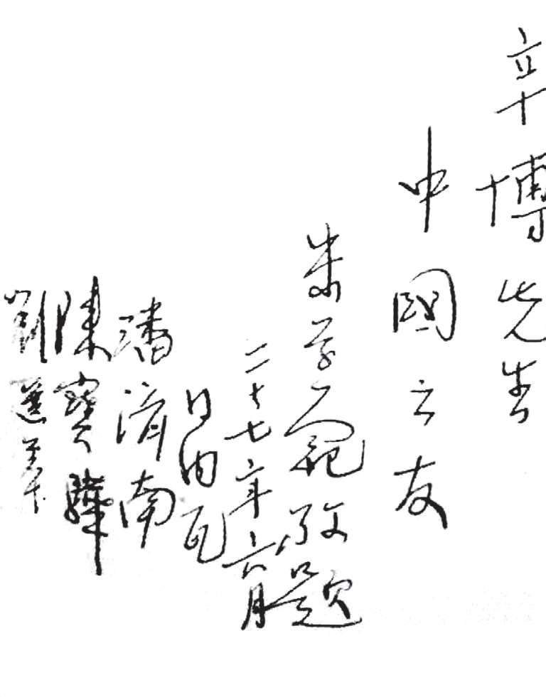 在奥胡斯市市郊,一处美丽的海湾旁边,白雪盈野,海鸥翔集,景色宜人,玛丽安娜和丈夫奥莱已早早地在家门口迎候我们。在她家中的资料室中保留着辛德贝格先生完整的档案资料。最珍贵的就是他在当年到中国来时由丹麦外交部发给的护照。我们所熟悉的辛德贝格的照片都是从那本护照上拷贝而来。在护照的最后一页写着1938年任中国劳工部长的朱学范先生的题词“中国之友”。玛丽安娜和丈夫奥莱曾于2006年4月和家人一起陪同比滕来栖霞区寻访当年辛德贝格曾经生活居住的地方,在江南水泥厂参观了小黄楼、小医院、生活居住的宿舍,同当年和辛德贝格一起生活过的老人亲切会面。临别时,玛丽安娜将自己培育的辛德贝格玫瑰赠送给了栖霞区人民政府和江南水泥厂。玛丽安娜告诉我们,自己正在收集资料,专门写一本关于辛德贝格的传记。谢大使十分高兴,感谢她为中国人民所做的这件具有特别意义的事情。让我们倍感兴奋的事情是,玛丽安娜告诉我们,辛德贝格当年到美国时有一个大的铁箱子,里面有许多关于南京大屠杀时期留下的影像资料,我们期待她在遍布全球各地的亲友寻访时能有惊人的发现。