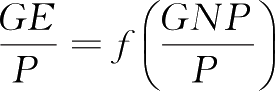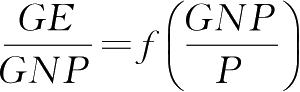 )。(2)Gupta认为政府支出要快于国民收入的增长速度,他使用人均指标来度量政府规模和经济发展,其函数关系为: