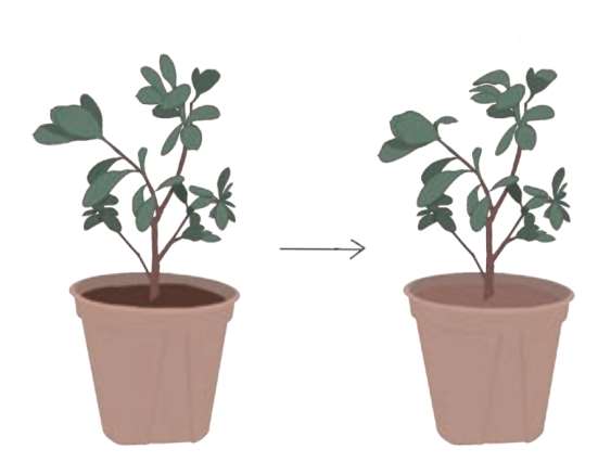 盆栽植物需长期浇水,土壤易碱化板结,同时根系不断在盆里盘结,造成土壤缝隙变小、透气性差,最终影响植株生长。出现上述情况,可使用松土工具打散土壤结块,触动部分浅层或深层根系,刺激根系再生长,使植物长势更旺盛。在表层土干燥后,可使用花铲沿花盆边缘在3~5cm深度逐寸翻动,但要注意避免伤到深层根系。