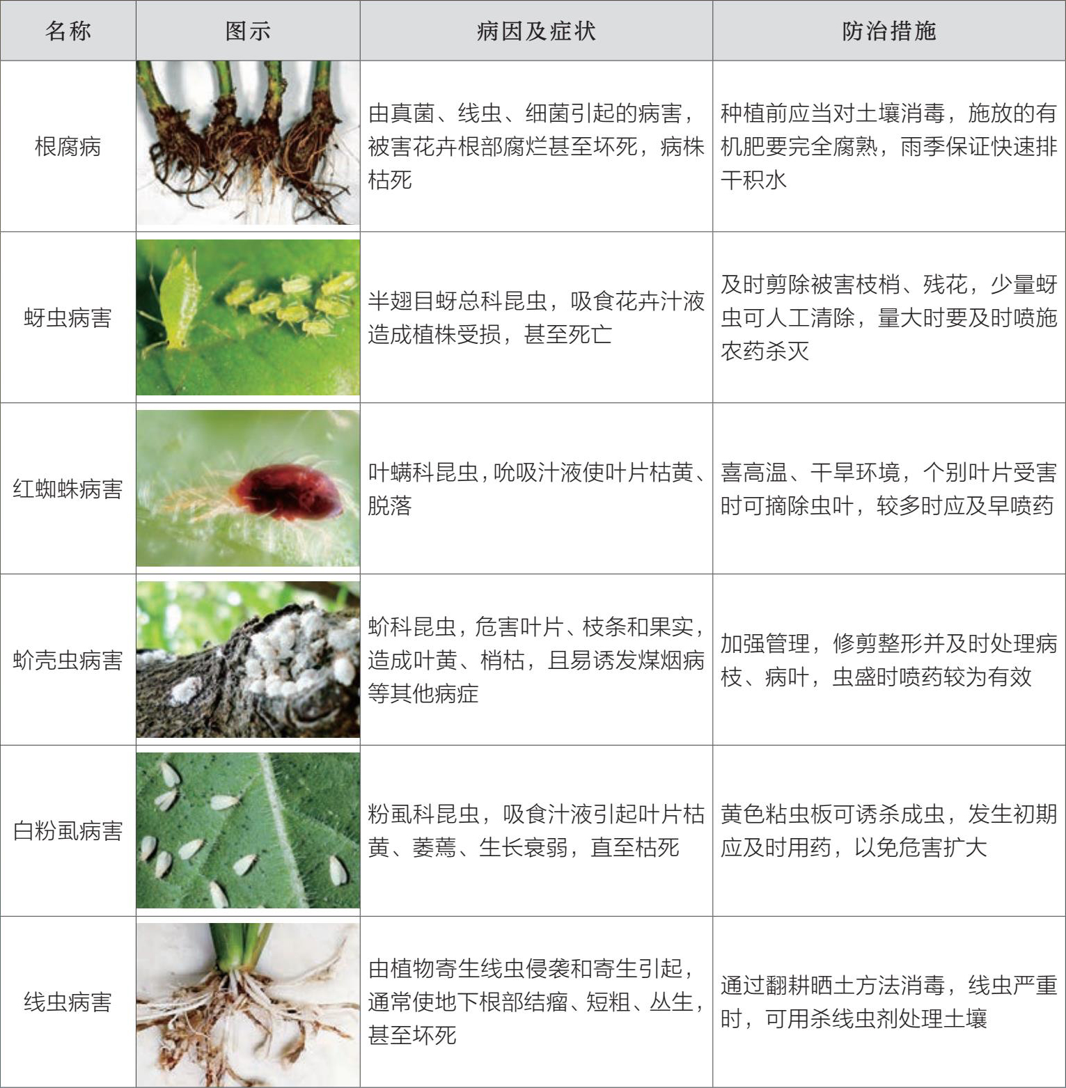 ● 幼苗期、嫩梢、嫩叶打药时易产生药害,大部分花卉在花期对农药敏感,应根据病虫害情况谨慎用药。