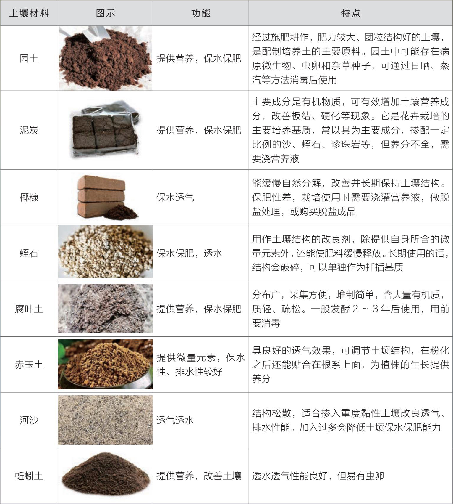 土壤对植物的作用包括固定植株,提供营养、水分等。阳台花卉主要栽植于花盆中,土壤需要根据花卉生长习性、材料的性质来人工配制。