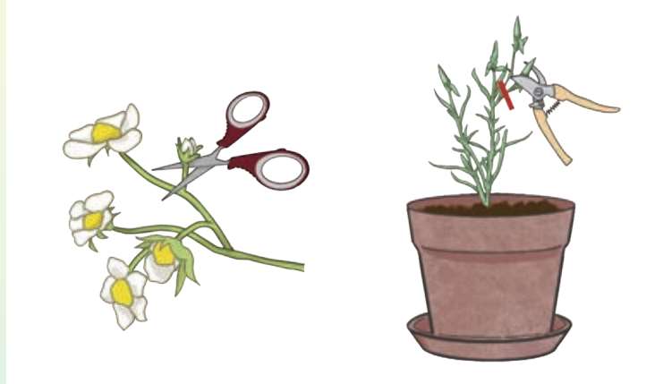 摘心常于生长初期进行,萌芽力强、耐修剪的种类可多次摘心,可以让花卉达到爆盆的效果。一些草花摘心后,花可能会变小,需慎重处理。