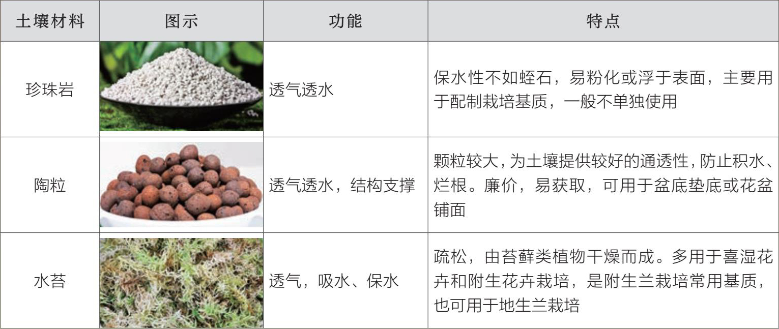 良好的基质具有提供营养、保水保肥、透水透气等特点,由多种材料按照一定比例混合而成。草本花卉一般采用泥炭和蛭石等配成的基质;小型木本花卉选用土和泥炭配制的基质;大型木本花卉使用园土,但要消毒,保证无病虫。