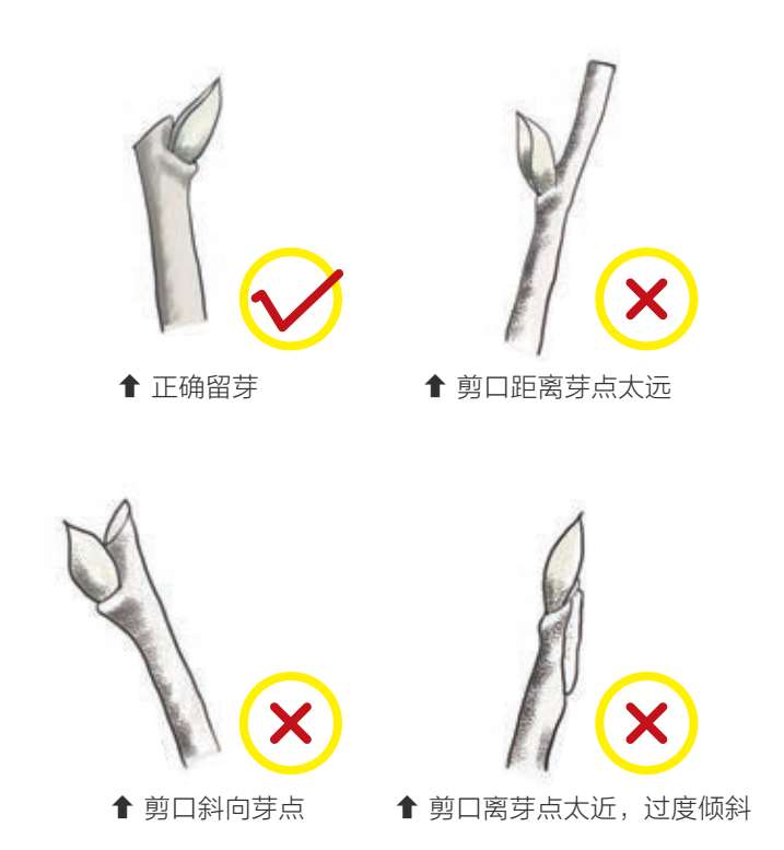 抹芽是指抹掉枝条生长的新芽。在生长期,用手将花卉基部或干上生长出来的多余不定芽摘除,避免消耗太多养分,抹芽时每根枝条一般留2~3个芽点。