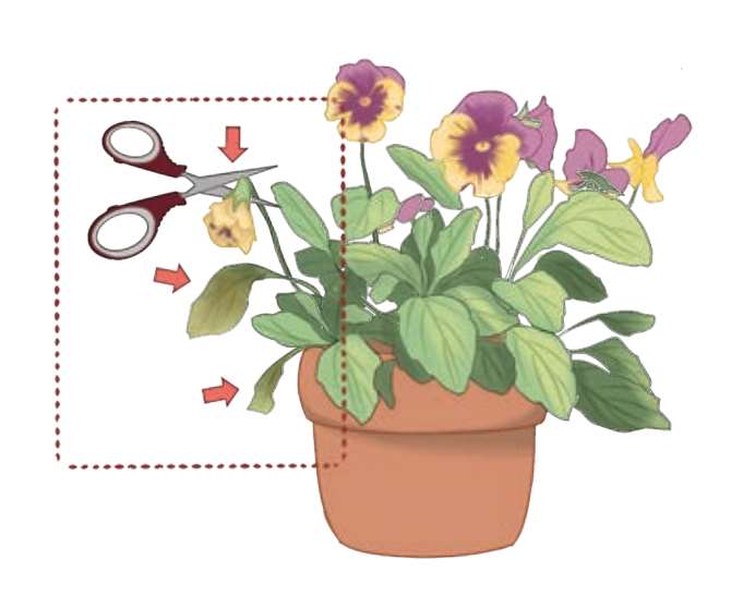 摘除残花时,从花朵下方的茎部开始,而不只是摘除花瓣部分。一些没有叶子的花茎,可直接从根部摘除,如三色堇、蝴蝶兰等。花序生长较多小花的花卉(如仙客来),可以先一朵朵摘除,等整体凋谢后再将其下方的茎摘除。留种的植物不宜除残花,但花期较长的,夏季结籽多不饱满、发芽率低,应于秋季开花留种为宜。