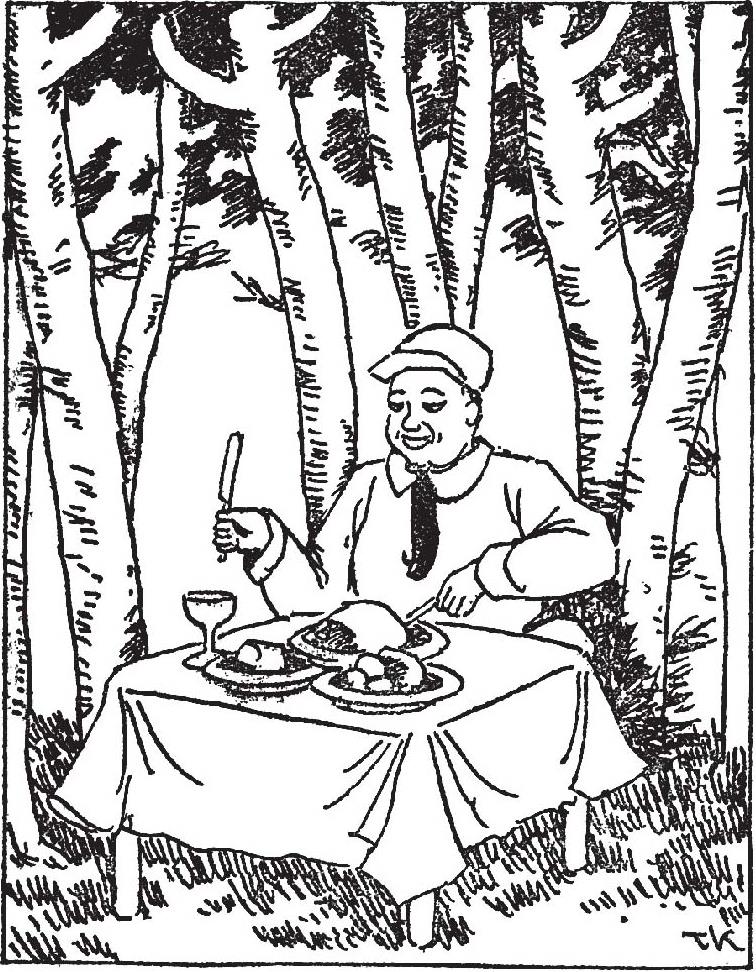 客人们一看真是这么回事儿,就不等第二次邀请,都纷纷围拢来,攥起刀叉,勇敢地开始行动。最令他们惊喜的是,一碗光了,立刻又会自动地换上来另外满满一碗。店老板站在屋角上看傻了眼,压根儿不知道该说什么,心里却在嘀咕:“这样的桌子你饭店真用得着哩!”