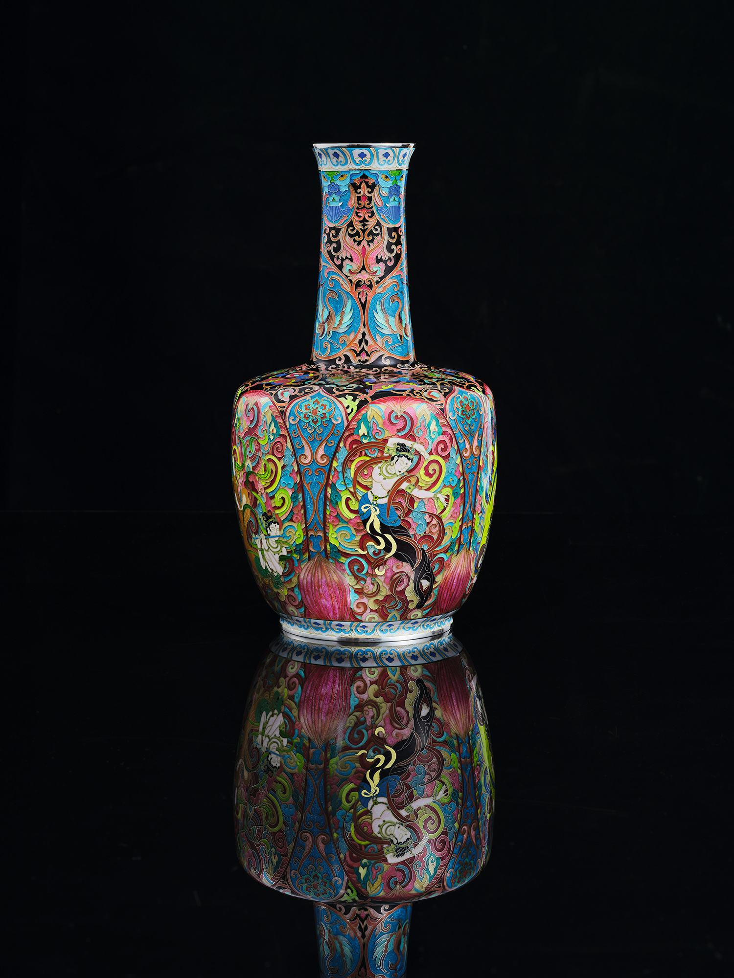 熊氏珐琅制作工艺图,用24K金丝掐制出图案