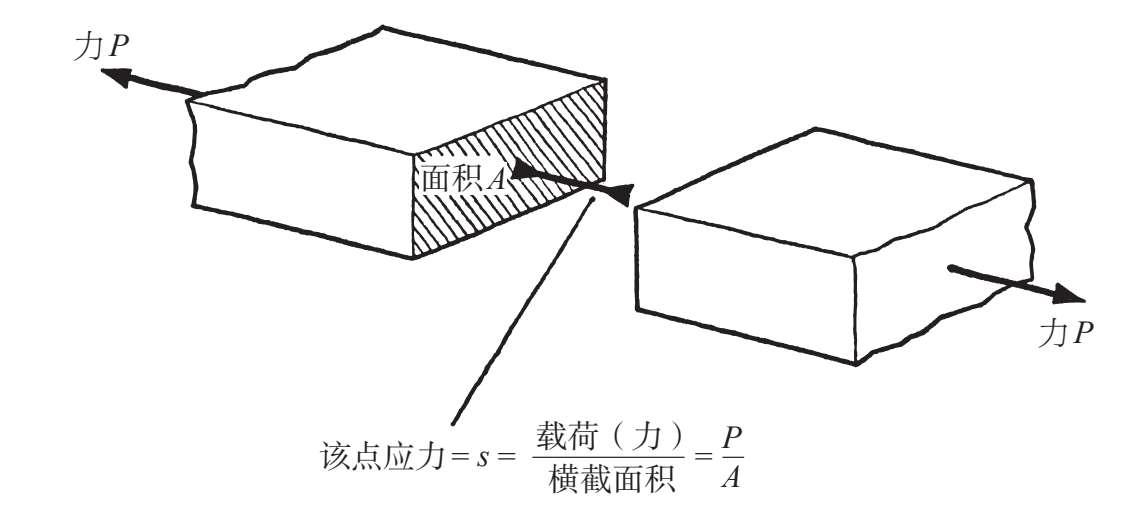 值得强调的是,材料中的应力就像流体中的压力,是某一点的状态,而与横截面积无关,不管它是1平方英寸(约为6.45平方厘米)、1平方厘米,还是1平方米。