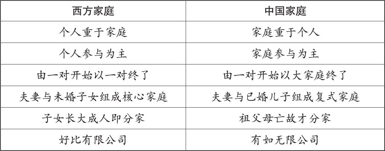 在家庭制度方面,我们认为西方家庭好比有限公司,而中国人的家庭则比较近于无限公司。兹分别说明如下,以供参考。