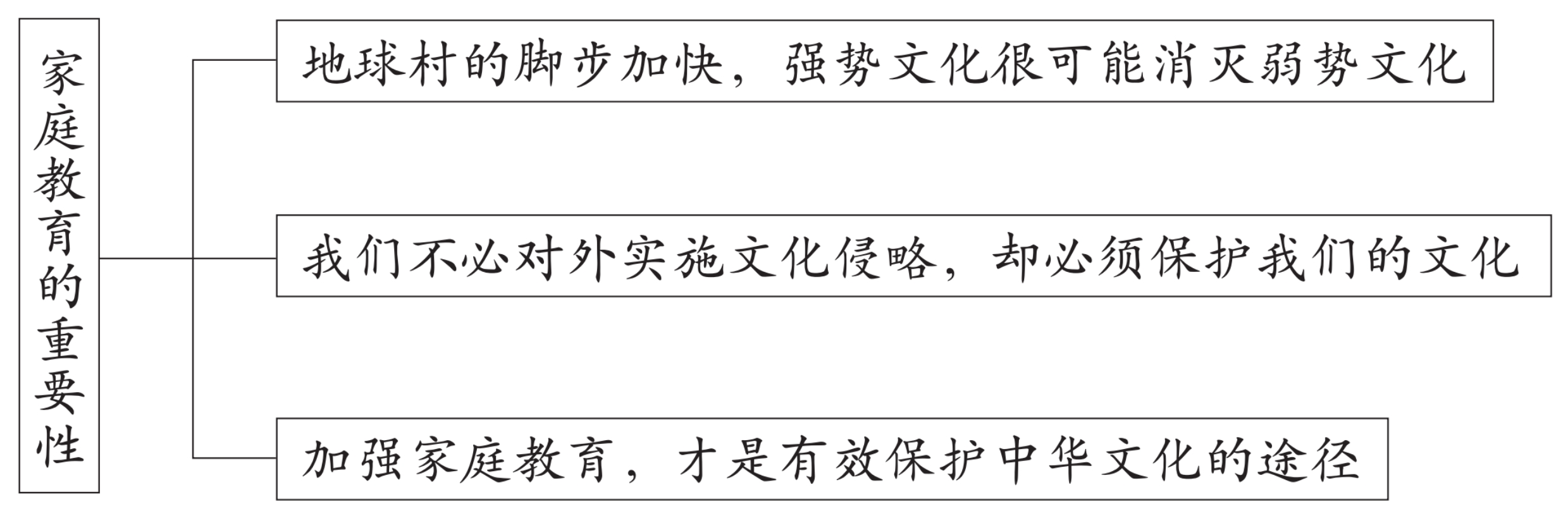 现代化是全人类共同追求的目标,全球的各个国家,都在不同的阶段中,企图摆脱传统的束缚而朝向这一目标奋力迈进。现代化最重要的一环,应该是人民生活的现代化。换句话说,现代生活是现代化最重要的部分。但是,什么是现代生活呢?就家庭来说,经济意义已经逐渐减弱,而教养与情感的培植却愈显重要。21世纪人类最难解决的全球化与本土化之间的平衡问题,恐怕只有依赖家庭教育,才能够合理地化解(如图3-1所示)。