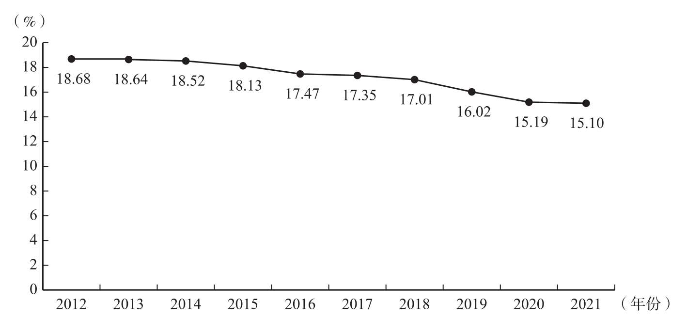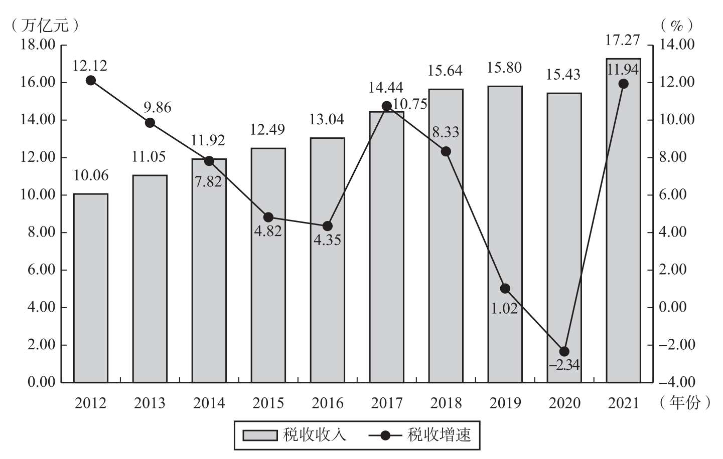 图2-3 2012—2021年我国税收收入占GDP比重的变化趋势