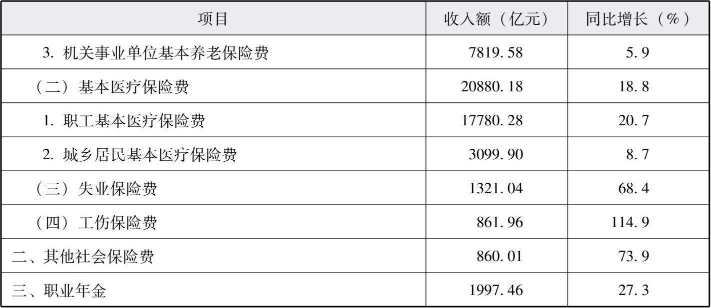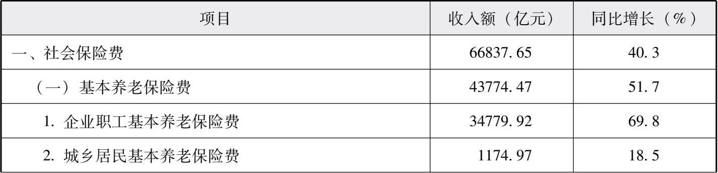 表2-2 2021年全国税务部门征收社会保险费收入情况