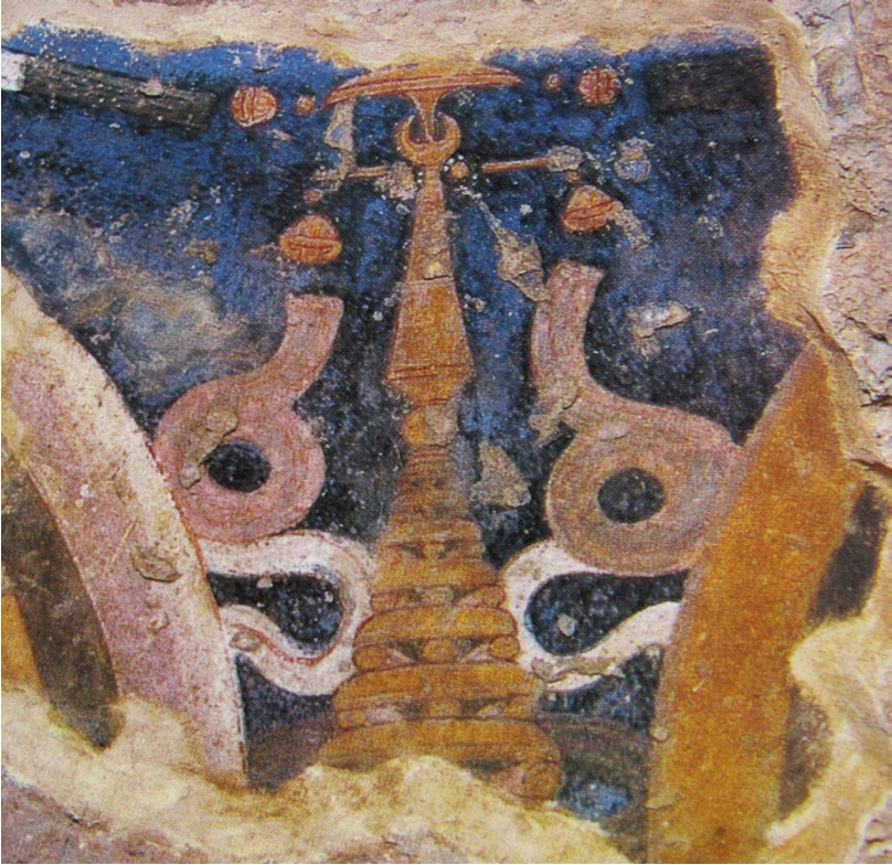 〔22〕。此宝珠形饰的意象应即博山,也便是《感通录》所言相轮上的博山。不过这种样式的佛塔似不多见,阿富汗巴米扬石窟第一六七窟前室北壁壁画中的佛塔是一例