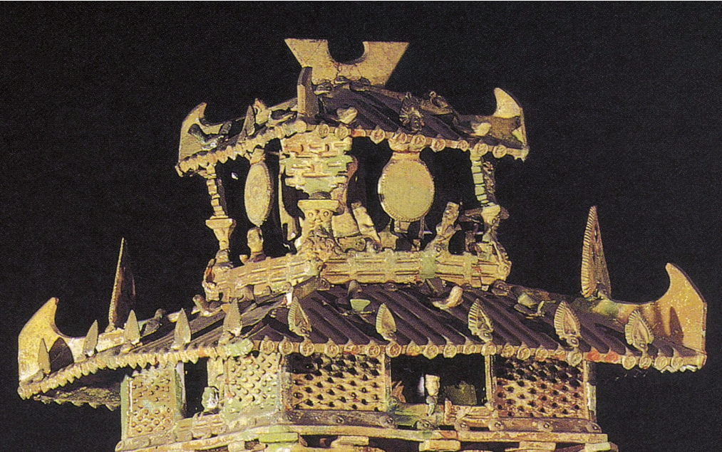 〔15〕,战国以来至北魏,它始终是楼观等屋顶常常用到的装饰手法,河北阜城县桑庄东汉晚期墓出土的绿釉陶楼是设计最为美观合理的一例,而达到了艺术与功能的完美结合