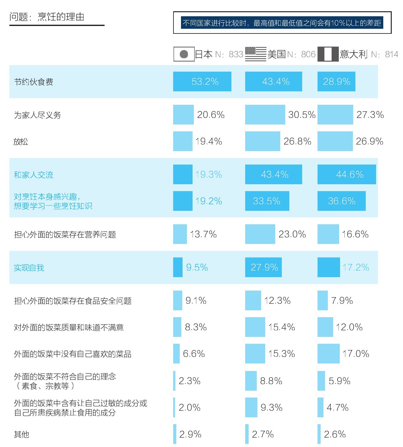 关于人们选择在家烹饪的理由,日本和欧美国家存在显著差异。