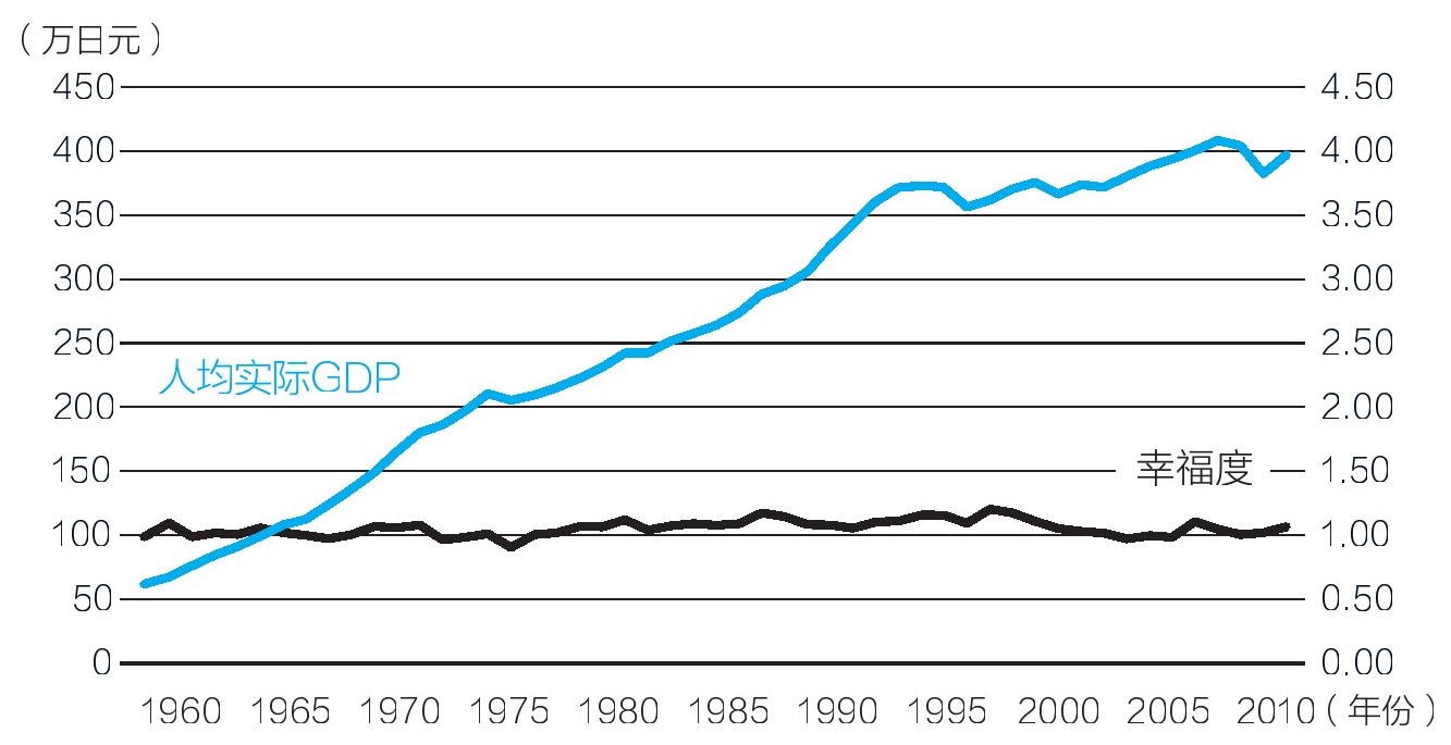 图1-7 日本人均GDP和幸福度的关系