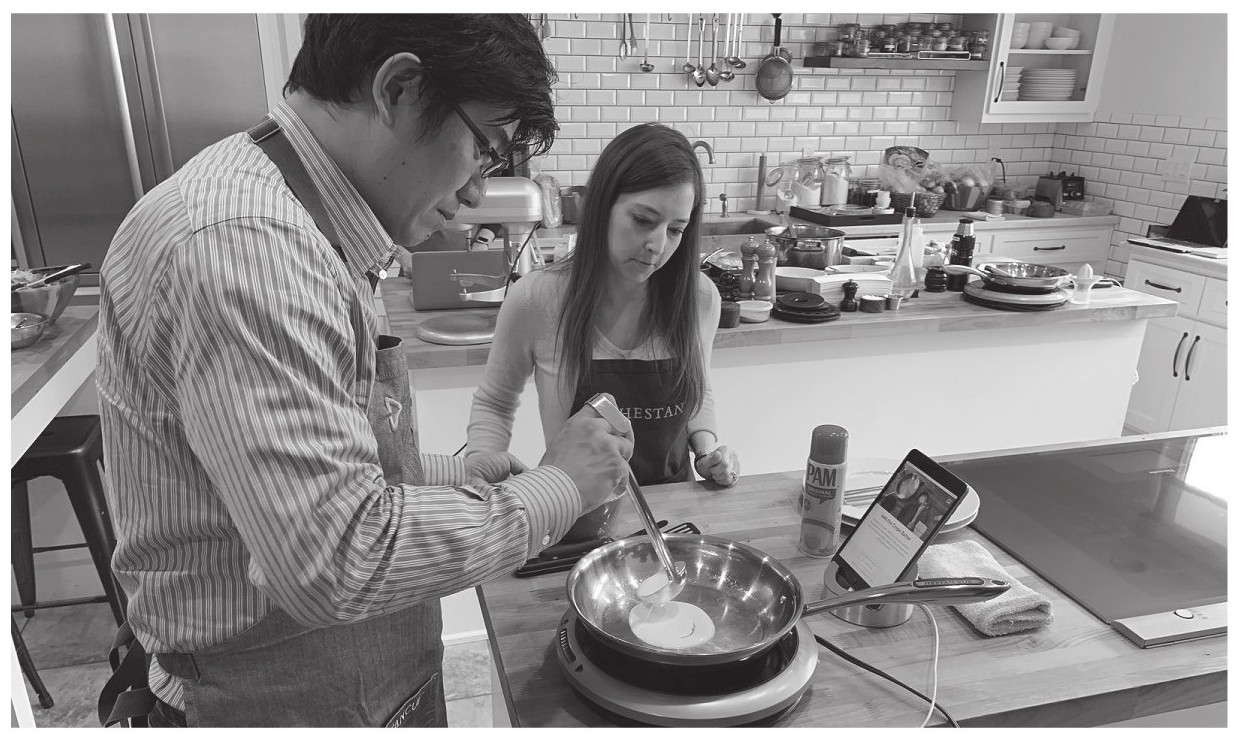 图1-11 使用Hestan Cue体验烹饪的笔者(田中宏隆)