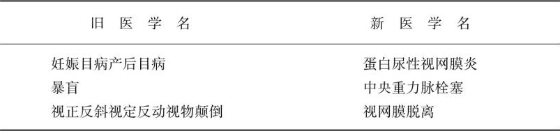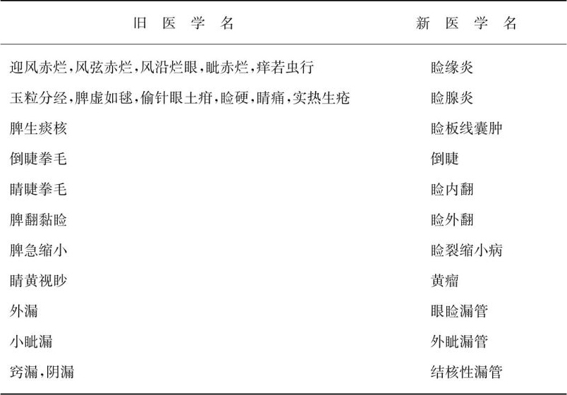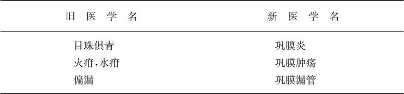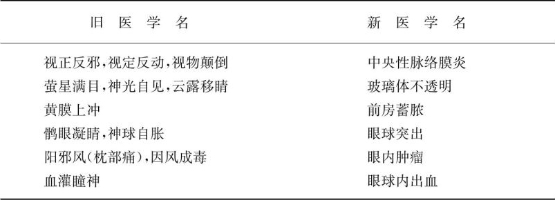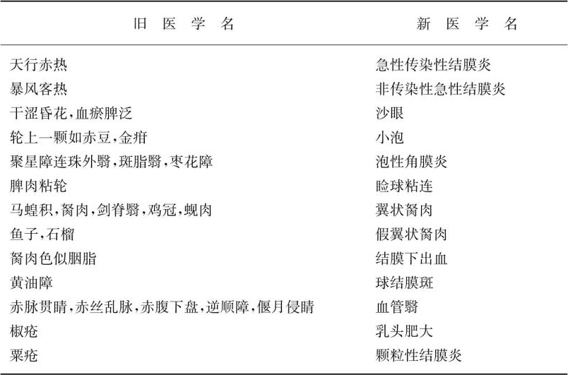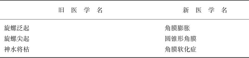 所谓内障者概指白内障及绿内障而言,外障概指角膜溃疡及其他眼病而言,兹就《证治准绳》所记诸病分别表列如下,其中所注释诸病,皆由张式溥医师一一厘定,想无大误。