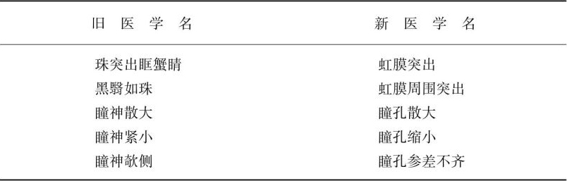 (4)眼之运动障碍:神球将反,麻痹性斜视,双目睛通,机能性斜视,瞳视反背,内斜视,直视,眼肌全麻痹,上视,压抑性麻痹,辘轳转开,眼球震颤,视一为二,复视,脾轮振,睑颤搐。