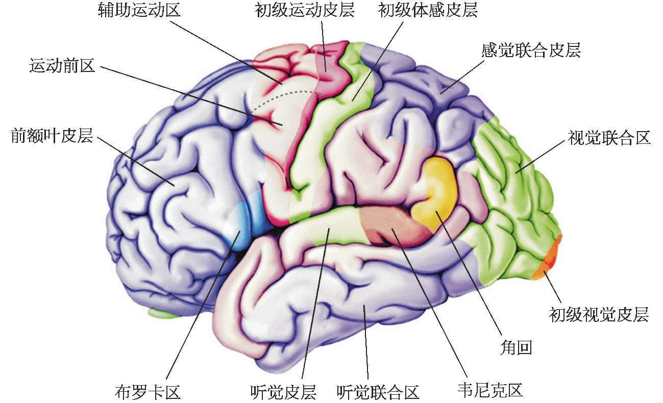 从 20 世纪下半叶以来,人们进一步知道脑中和言语有关的区域还不只限于布罗卡区、韦尼克区以及它们之间的联结线路,还有更多的脑区也与之有关。