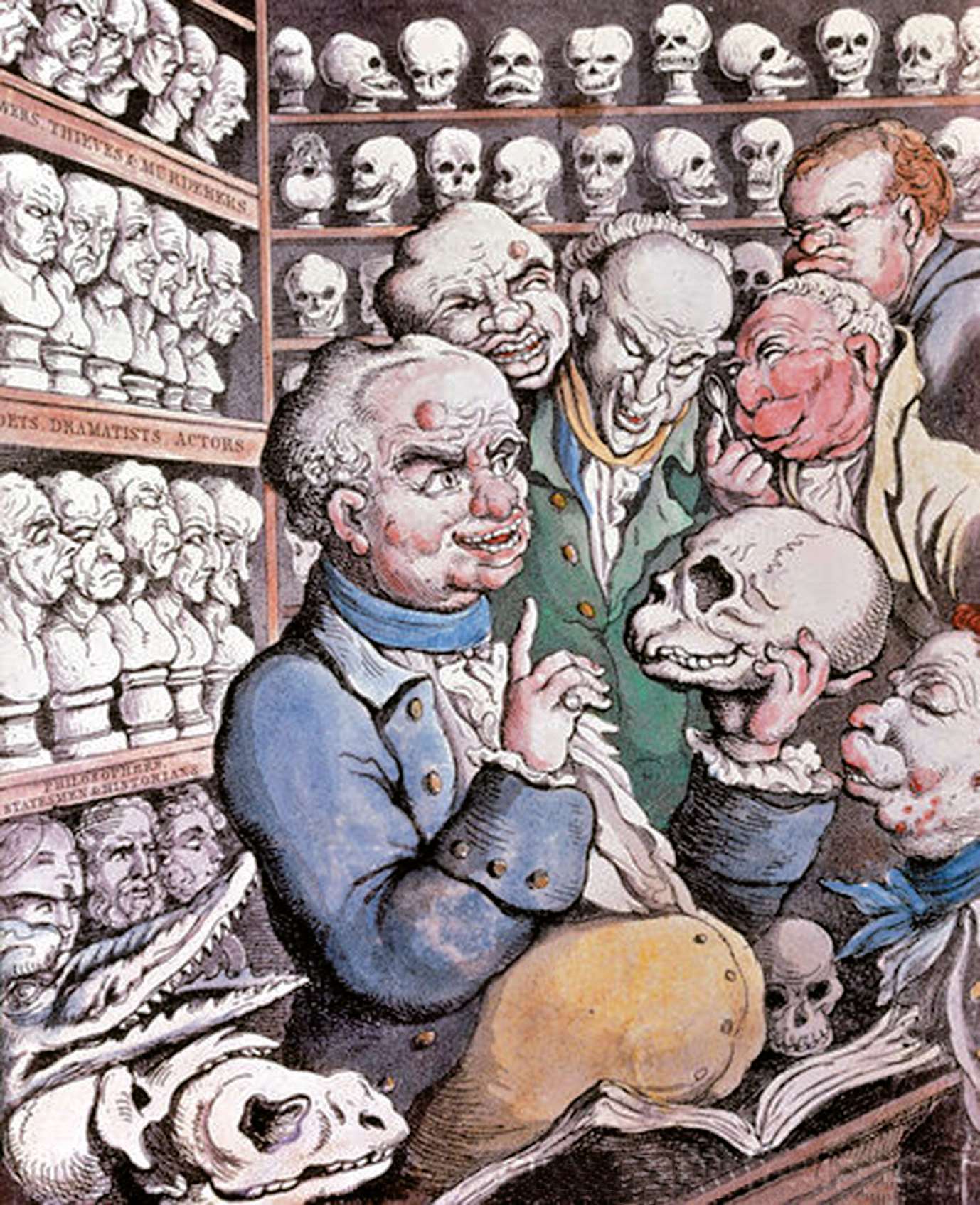 图 1.4 颅相学家搜集各色人等的颅骨,研究这些人的性格和行为特点与他们的颅骨特征之间的关系,这吓坏了维也纳的居民