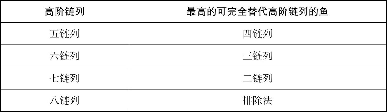 根据上述文字可列出下表(表6-2),从中就可了解到高阶链列的一些详细情况了:
