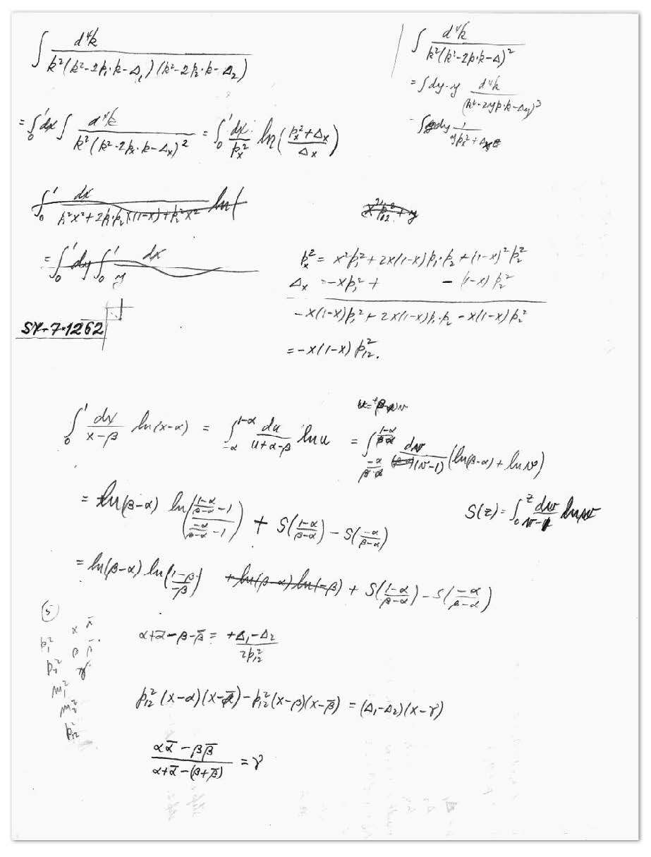 下面是我文档里的一页,典型的费曼风格,内容是计算一个费曼图。
