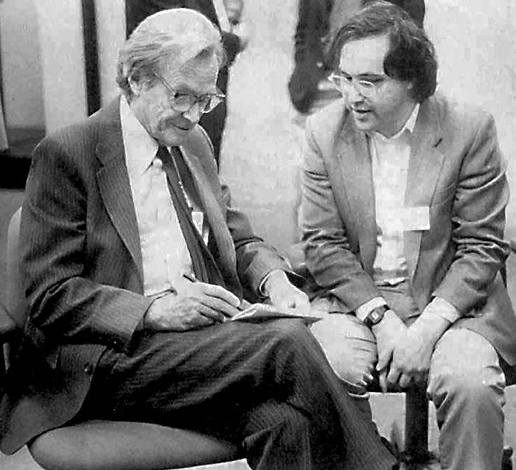 我记得当时我们都在波士顿为思维机器公司做咨询,费曼经常会说:“我们躲起来做点物理学研究吧。”这就是一个典型的场景。是的,我以为没有人注意到,我们在一个关于新计算机系统的新闻发布会后台讨论着非线性的 σ 模型。通常,费曼会做一些计算,而我则不断地抗议说,我们应该直接去用计算机计算。我最终还是会那样做。然后我会得到一些结果,他也会得到一些结果,我们会争论谁对结果的直觉更胜一筹。