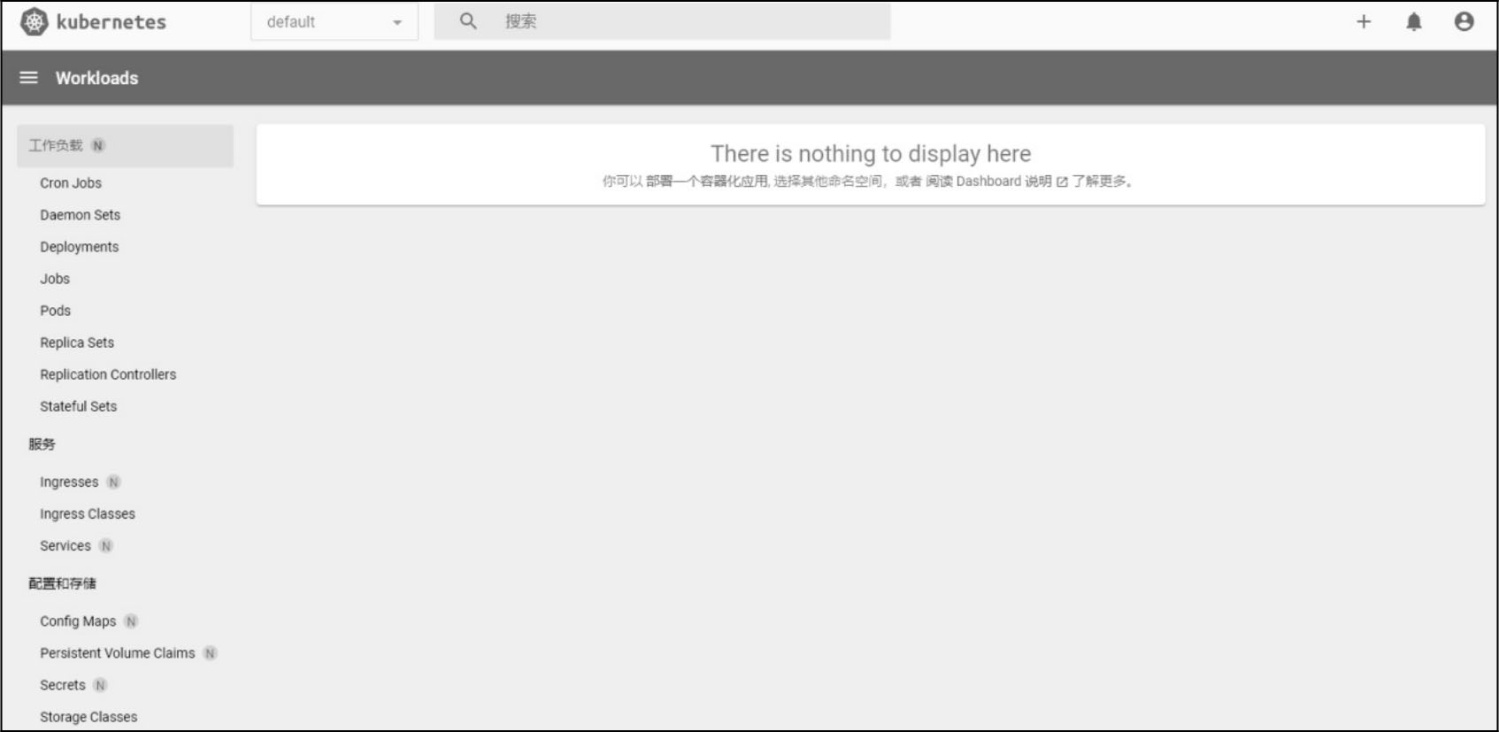 将输出的Token复制到输入框中,然后单击登录,进入Dashboard首页,如图2-5所示。