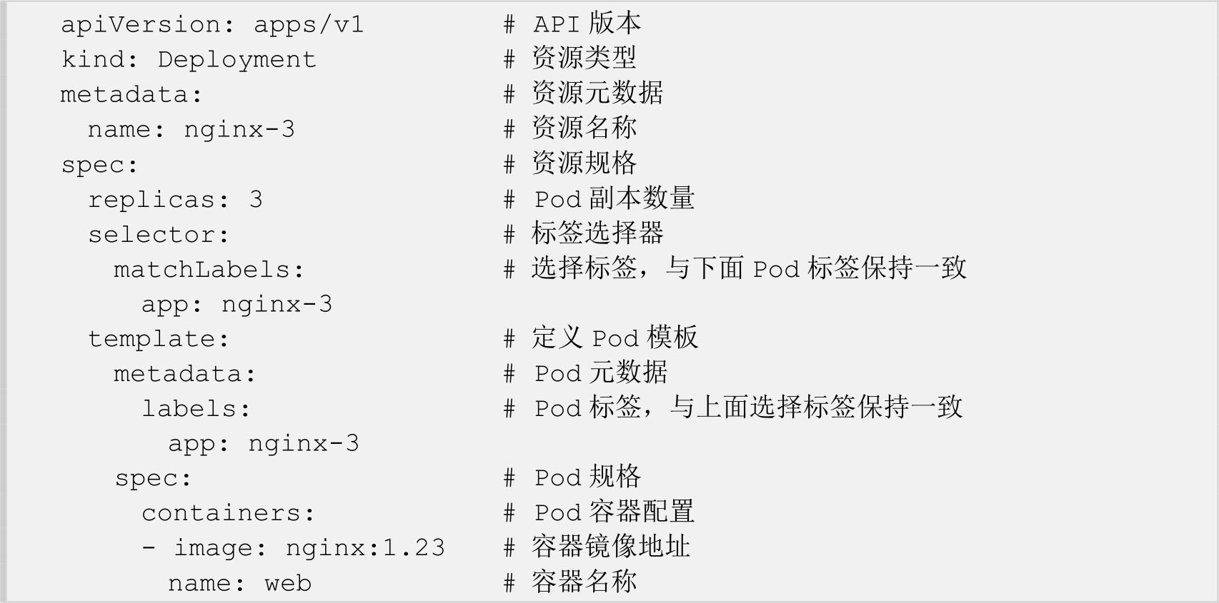 本节将通过YAML格式的资源文件部署应用程序。首先,创建一个名为“deploymentnginx-3.yaml”的资源文件,内容如下: