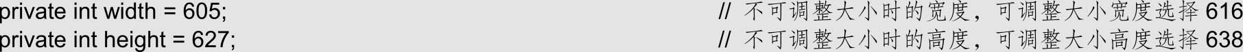 (2)在类中创建两个属性,分别用于记录窗体的宽度和高度。本游戏界面采用600(宽度)×600(高度)的尺寸,但是考虑到主窗体有外部边界,所以主窗体的宽度和高度分别采用605和627。代码如下: