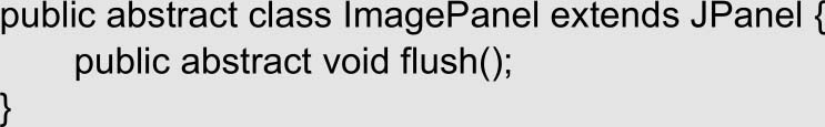 ImagePanel类是项目中的功能面板类,这个类是抽象的,作为程序中所有功能面板的父类。ImagePanel类中仅定义了一个抽象的flush()方法,该方法允许面板重新读取待操作的图片,从而实现如“恢复”“将修改后的图片应用到所有面板中”的功能。