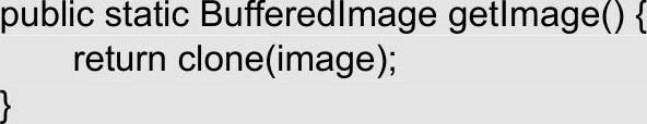 (4)为了确保程序在修改图片后能够恢复原始图片,image属性的getter方法不会直接返回image对象本身,而是返回该对象的一个克隆对象。这样,无论用户对通过getter方法获取到的图片进行何种修改,该方法都始终返回原始图片的克隆对象,从而不会影响到原始图片。getter方法的代码如下: