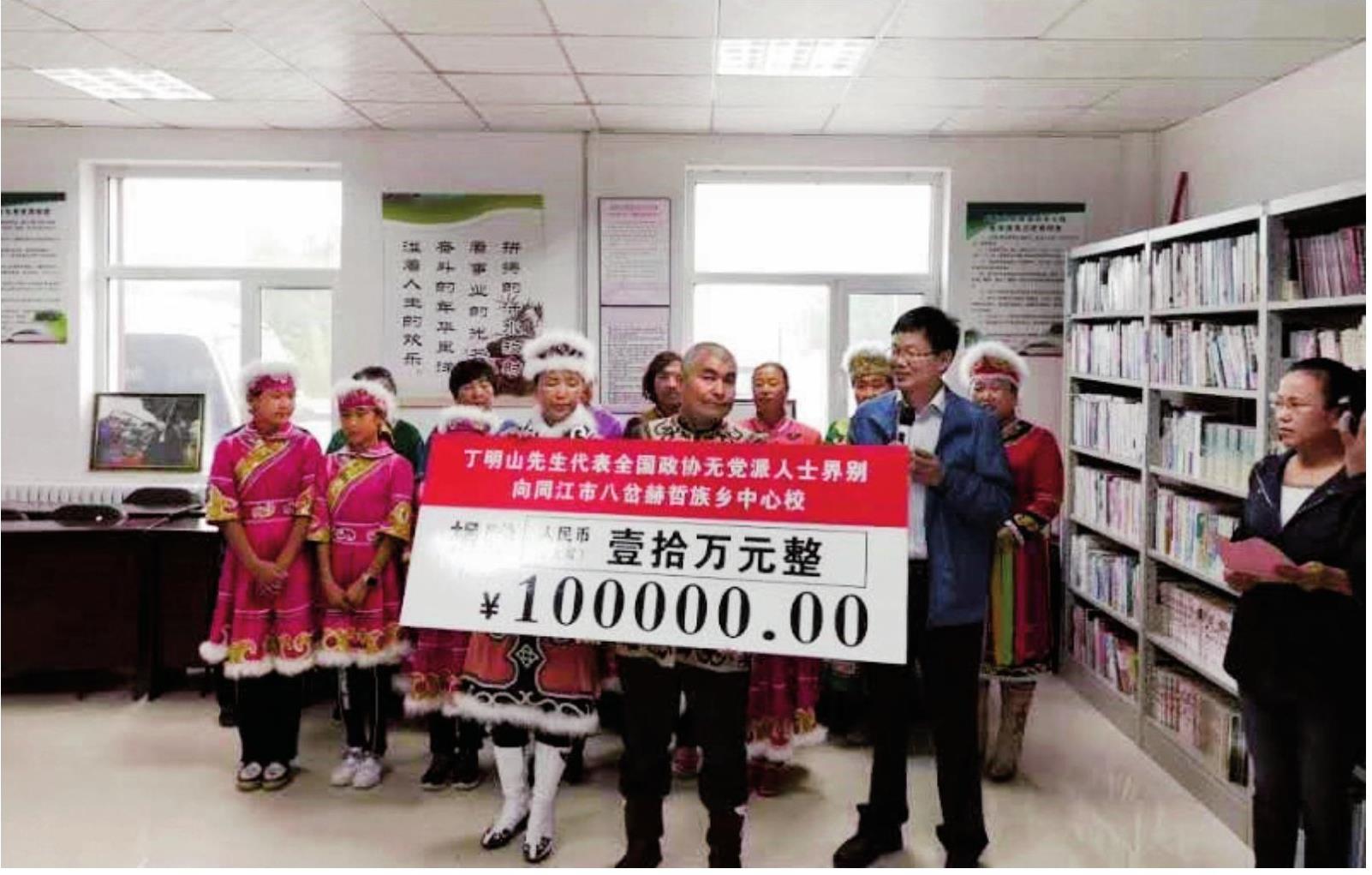 2018年,随全国政协无党派界别考察团赴黑龙江边境地区赫哲族乡中心校考察