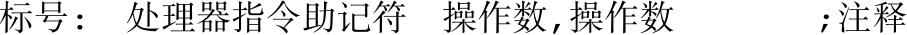 标号和名字是符合汇编程序语法的用户自定义的标识符(Identifier)。标识符(也称为符号,Symbol)最多由31个字母、数字及规定的特殊符号(如_、$、?、@)组成,但不能以数字开头(与高级程序设计语言一样)。在一个源程序中,用户定义的每个标识符必须是唯一的,而且不能是汇编程序采用的保留字。保留字(Reserved Word)是编程语言本身需要使用的各种具有特定含义的标识符,也称为关键字(Key Word),汇编程序中的保留字主要有处理器指令助记符、伪指令助记符、操作符、寄存器名以及预定义符号等。