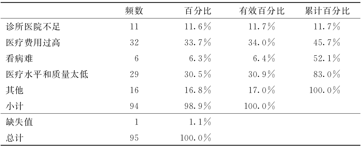 同时,农村医疗水平和质量太低问题的存在也是一个基本事实。村庄的诊所和医院的医疗设施等硬件条件较差,而且诊所和医院也严重缺乏高水平的医生,所有这些都决定了农村医疗卫生服务的质量处于较低水平,这在一定程度上制约了农村医疗卫生系统满足农村居民的需求。