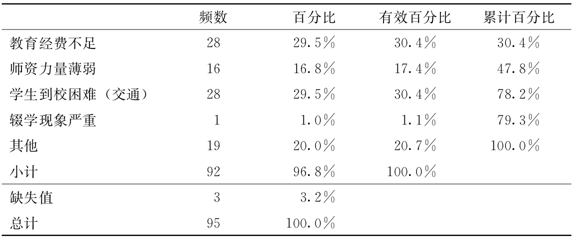 此外,同样也因为经济条件的限制,较多的村庄难以解决学生的到校困难问题。尤其是在没有设小学的村庄,村内的学龄儿童必须到村外上小学,由此也就出现了学生上学的交通问题,而这又是村庄难以解决的问题。