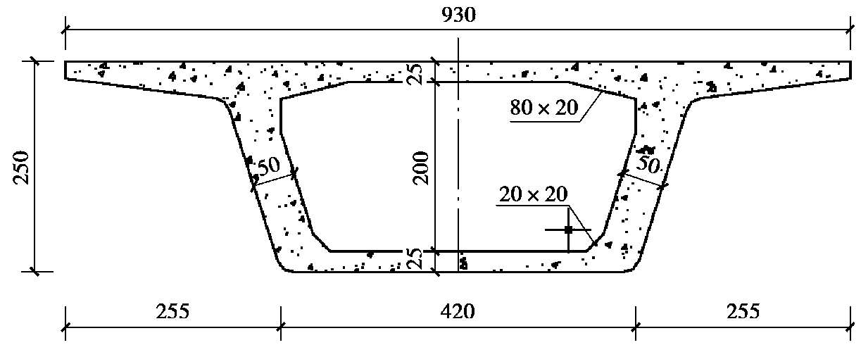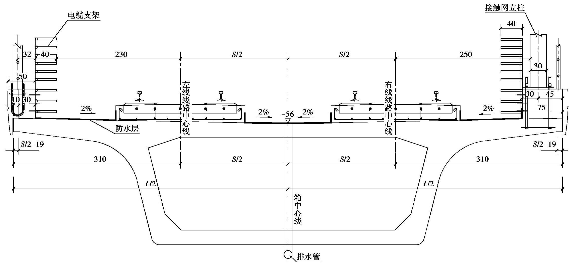 图 2.52 标准双线预制简支梁跨中截面(单位:cm)