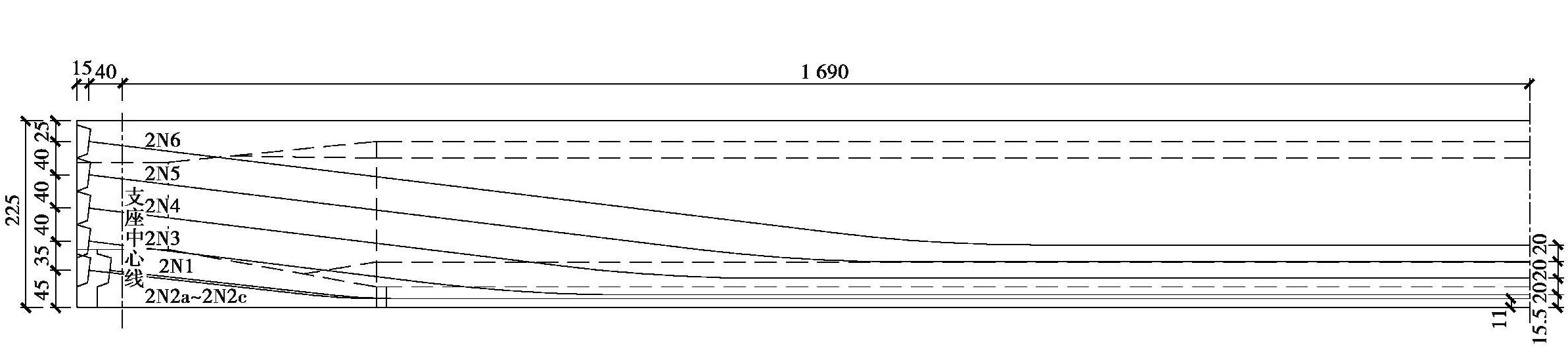 图 2.55 35 m预制简支梁钢束布置图(单位:cm)