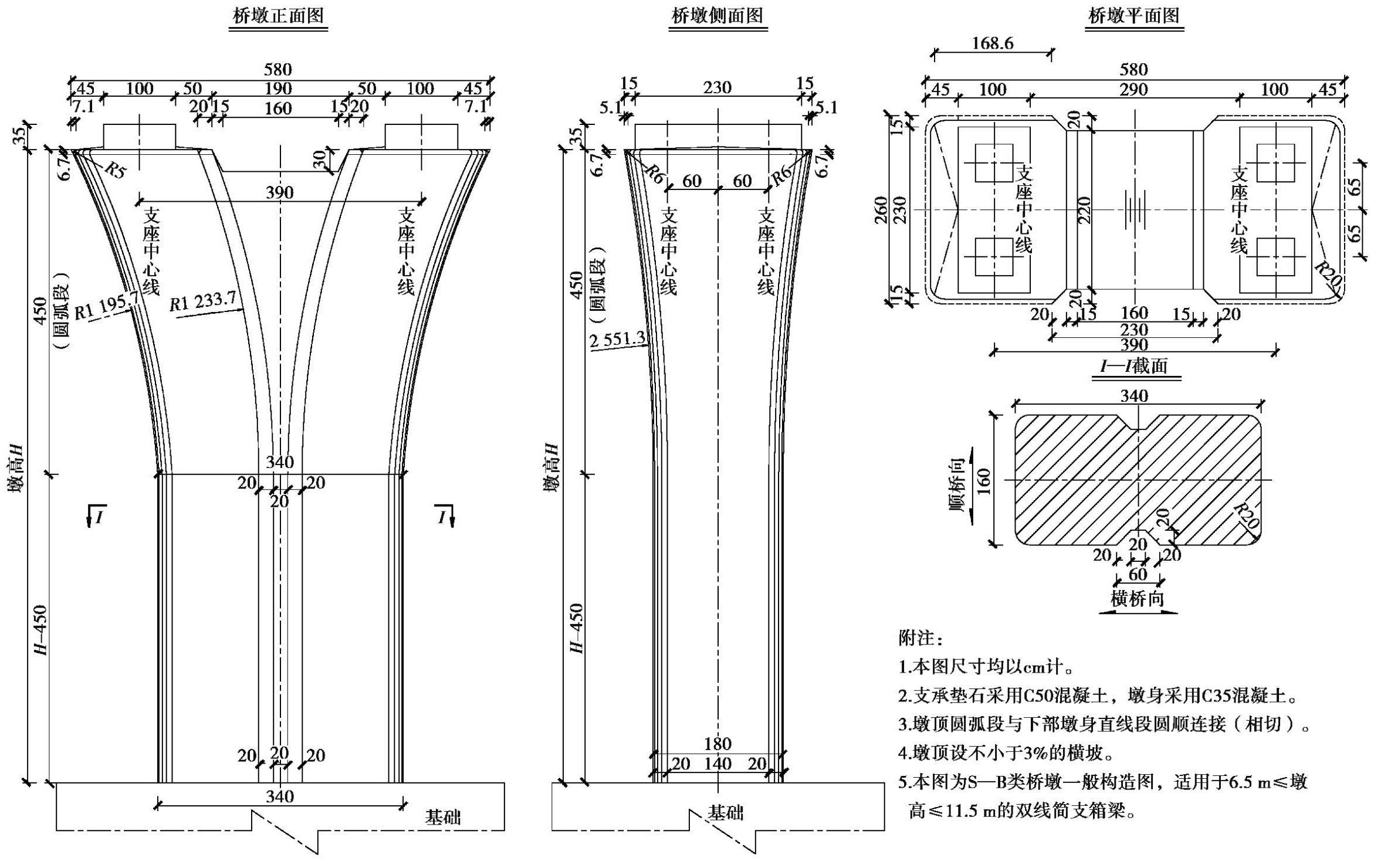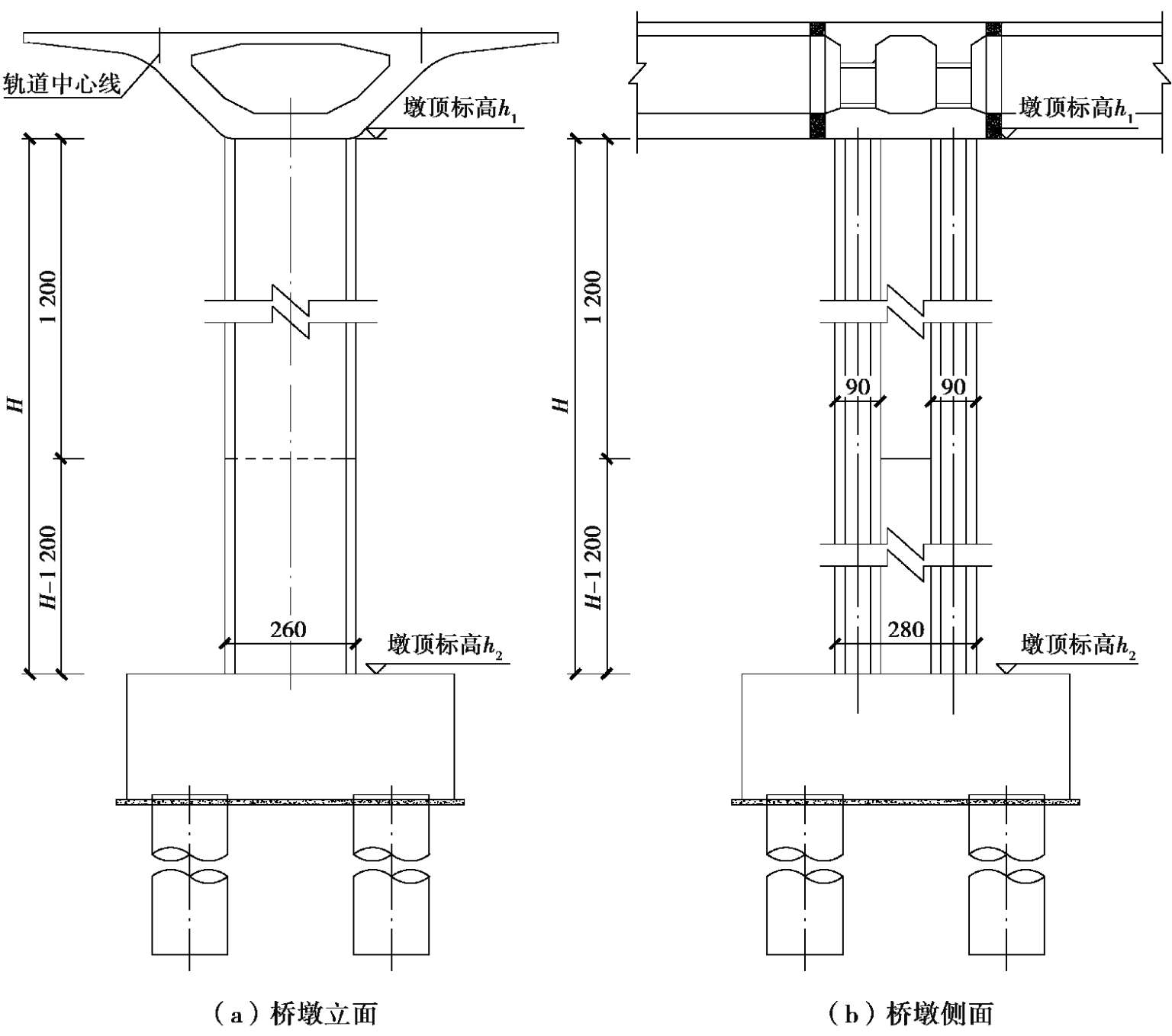 桥墩采用普通钢筋混凝土结构。现浇混凝土桥墩具有技术成熟、可靠性高、抗震性能优良、施工难度低、投资省的优点,推荐采用。