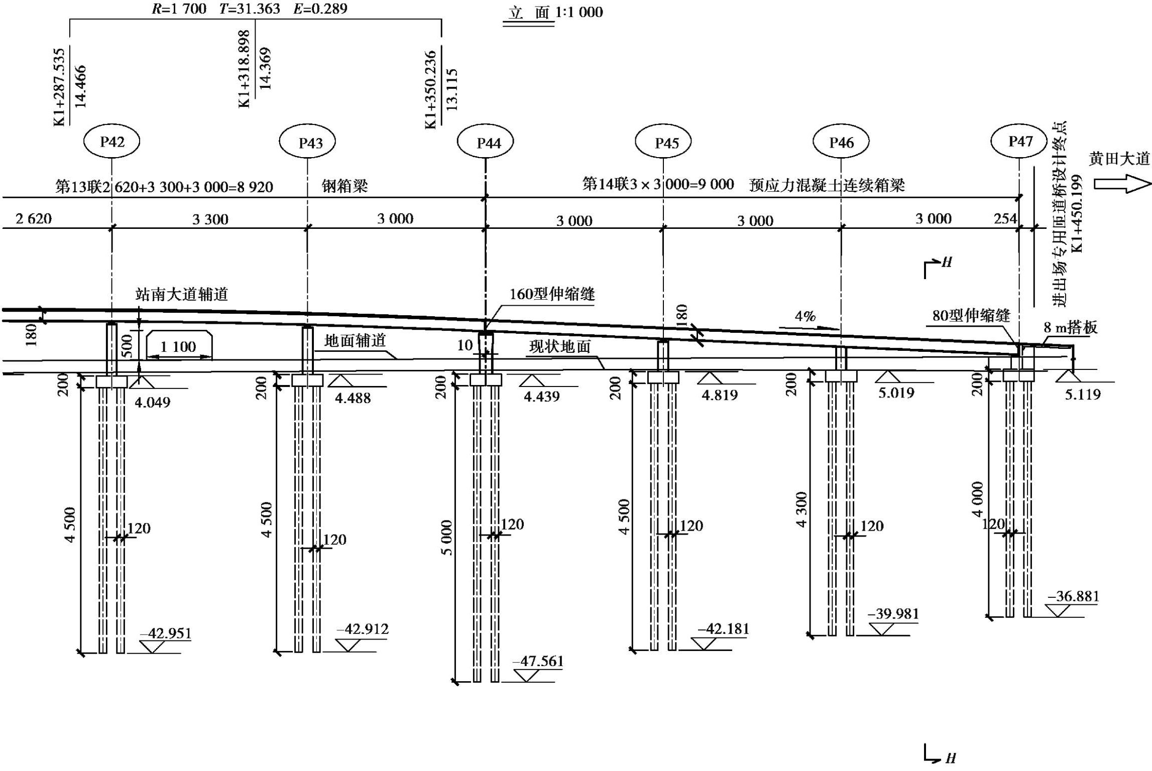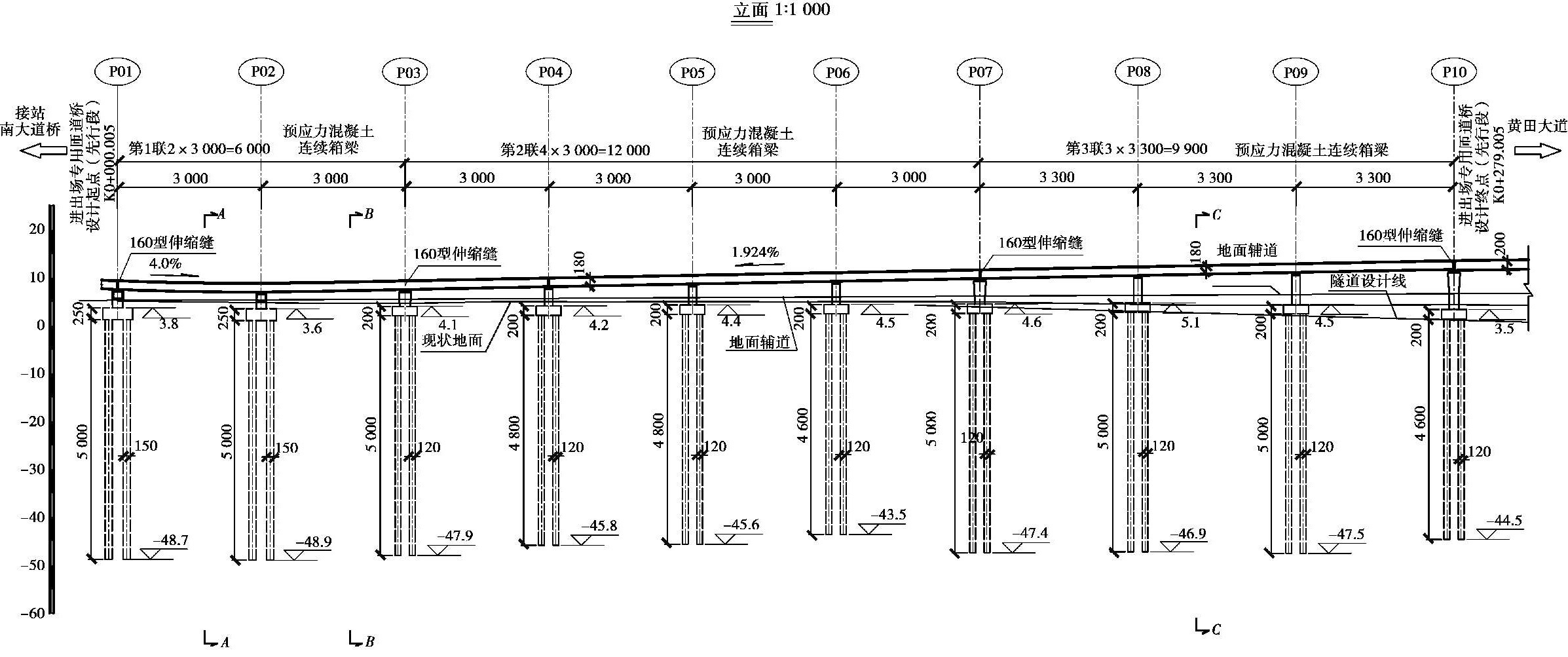 桥隧净空高度:4.5 m(匝道)、5.0 m(机场高速I、E匝道)、5.5 m(内环高速公路)。